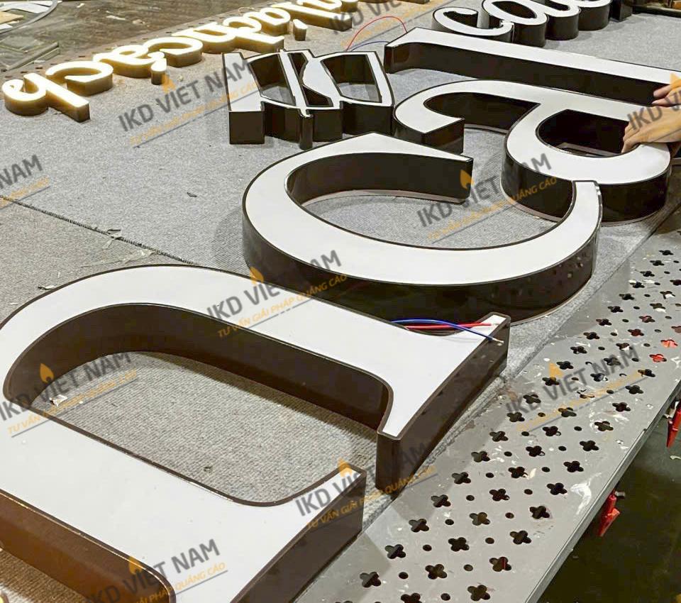 Biển hiệu được sản xuất tại xưởng của IKD với hệ thống máy móc hiện đại như: