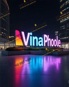 | Chữ nổi mica LED sáng mặt | Mica + chân inox/tôn sơn + LED module | 2.200.000 – 3.800.000đ/m² |