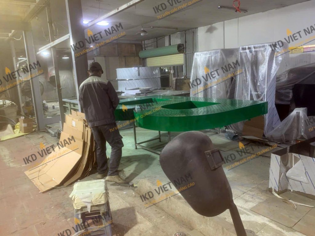 Biển hiệu được sản xuất tại xưởng của IKD Việt Nam với hệ thống máy móc hiện đại.