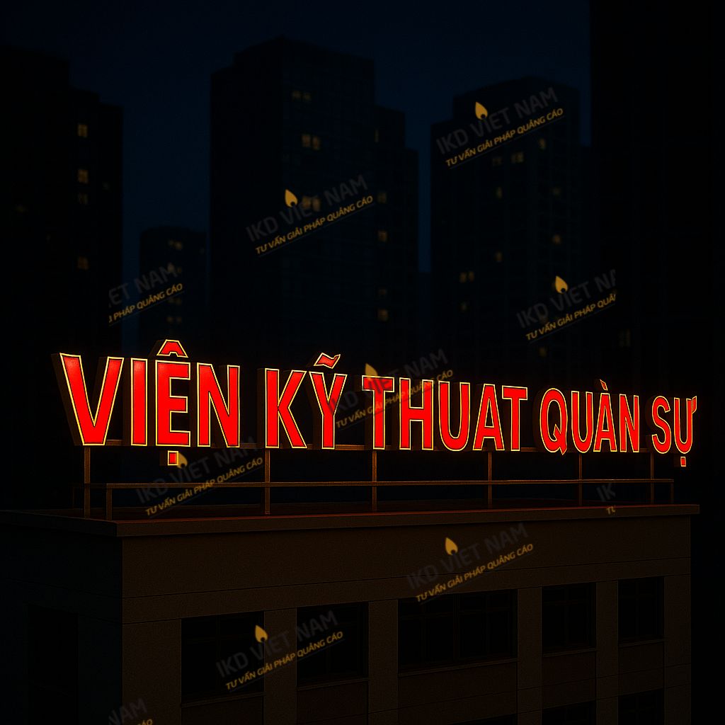 Công ty TNHH Quảng cáo IKD Việt Nam là đơn vị uy tín cung cấp giải pháp trọn gói từ khảo sát, thiết kế 2D – 3D, sản xuất tại xưởng đến thi công lắp đặt an toàn, đúng kỹ thuật. IKD sử dụng vật liệu chất lượng cao như alu, inox 304, mica và hệ thống LED chống nước, phù hợp với điều kiện khí hậu miền Bắc, đảm bảo độ bền và tính thẩm mỹ lâu dài.