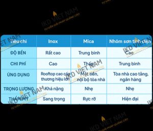 10.1. Chữ tòa nhà nên dùng inox hay tôn sơn tĩnh điện?